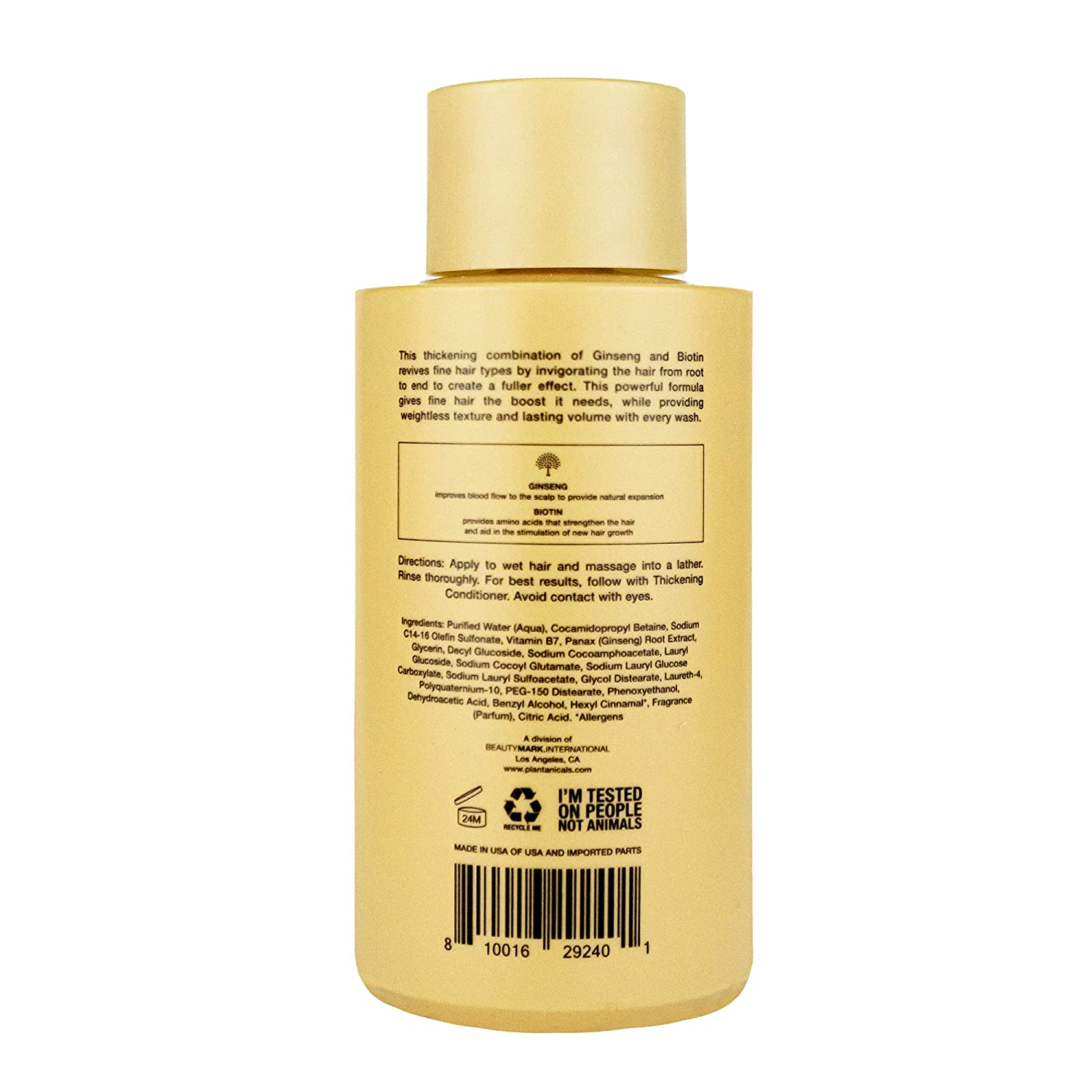 Plantanicals Shampooing apaisant naturel pour cheveux fins sans sulfate , parabène ,Silicon , et d'autres dérivés chimiques à base de Ginseng qui améliore le flux sanguin vers le cuir chevelu pour fournir une expansion naturelle , Biotine fournit des acides aminés qui renforcent les cheveux et aident à stimuler la croissance de nouveaux cheveux